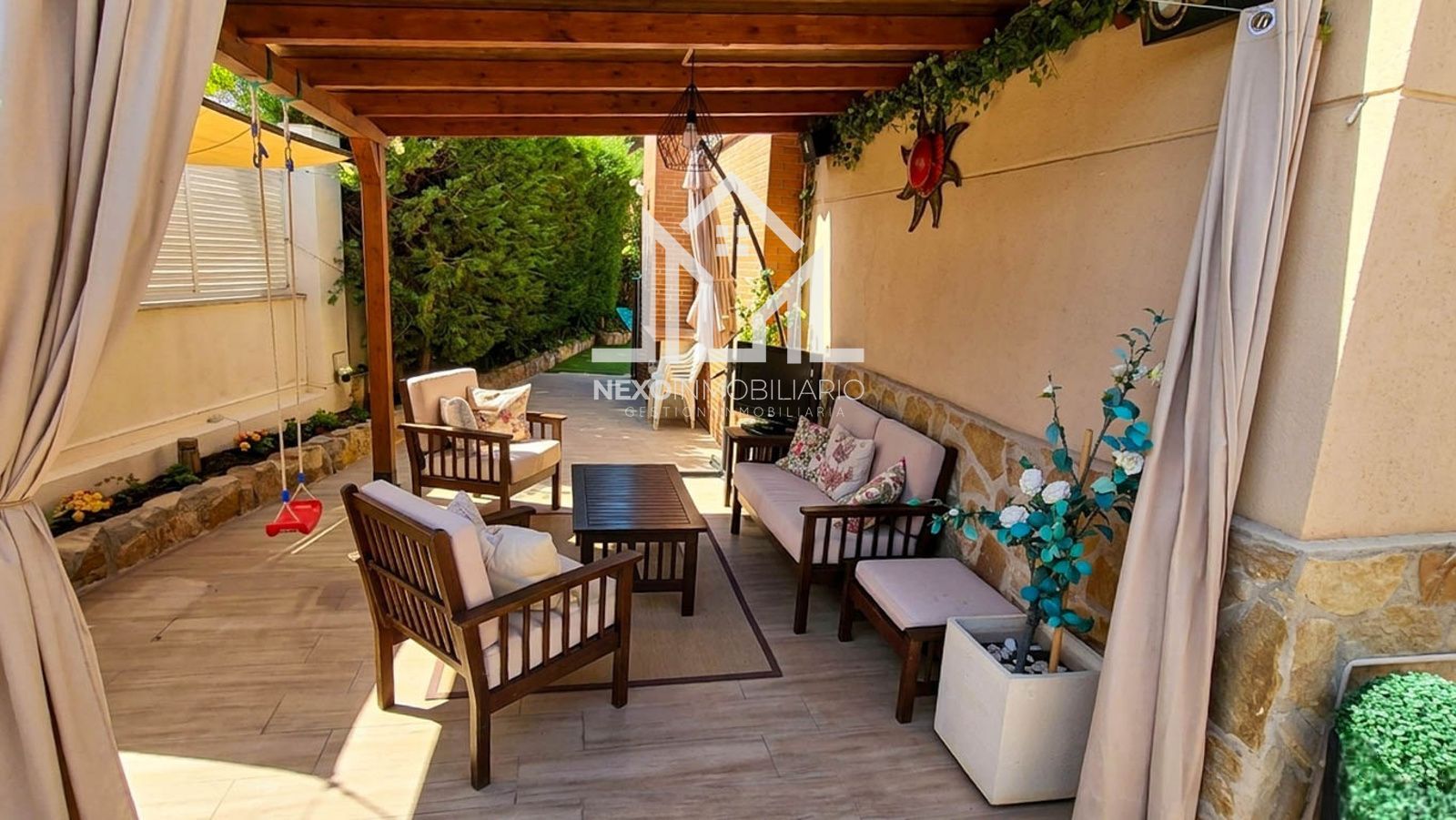 En la planta baja, dispone de una cocina amplia y luminosa, acompañada de una práctica zona de almacenamiento o despensa. El salón-comedor, espacioso y acogedor, tiene acceso directo al patio trasero, donde se encuentra una piscina privada y zona de barbacoa, conectando a su vez con el jardín delantero, creando un entorno ideal para disfrutar al aire libre. En esta misma planta también se encuentra un aseo de cortesía y acceso directo al garaje. La primera planta alberga cuatro dormitorios, todos ellos con armarios empotrados, destacando el dormitorio principal tipo suite con baño privado equipado con bañera. Además, esta planta cuenta con un segundo baño completo con plato de ducha y uno de los dormitorios acondicionado actualmente como despacho, perfecto para teletrabajo. En la última planta se encuentra una amplia buhardilla que ofrece un espacio exclusivo y versátil, compuesta por una gran habitación con vestidor, un baño con jacuzzi y una acogedora sala de estar, ideal como zona de relax. Por último, en la zona de garaje se ha habilitado un práctico espacio de lavandería, aportando funcionalidad adicional a la vivienda. Una propiedad única que combina diseño, comodidad y excelentes espacios tanto interiores como exteriores, ideal para disfrutar en familia. No dejes pasar esta oportunidad: contáctanos y ven a visitarla. En Nexo Inmobiliario, además, te ayudamos a gestionar la financiación de tu hipoteca para que tu compra sea más sencilla y segura.